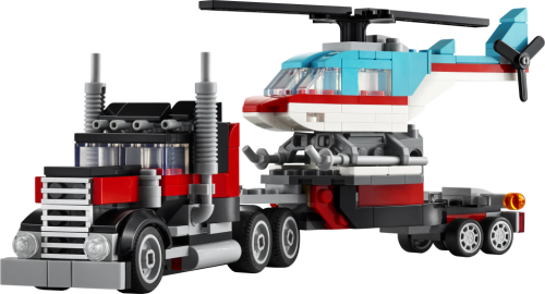 Malí stavitelé si s touto stavebnicí z řady LEGO® Creator 3 v 1 poskládají hned 3 různé dvojice modelů. Nejprve si postaví třeba náklaďák s plochou korbou a helikoptéru, pak modely přestaví na vrtulové letadlo a náklaďák s palivem s otáčecími koly a pak se vydají na závody s modely hot rodu a SUV – nebo si postaví vlastní originální vozidla.