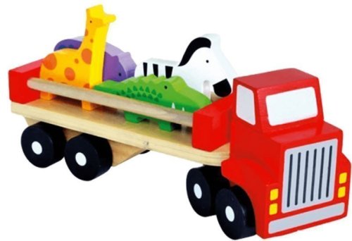 Zvířátka, nastupovat! Nákladní autíčko s přívěsem je už připraveno k převozu. Díky velké korbě se na přívěs vejde žirafa, hroch, krokodýl i zebra. Tak honem honem, vzhůru za dobrodružstvím!Veškeré části autíčka i zvířátka jsou vyrobena z kvalitního masivního dřeva, vhodně doplněného krásnými barvami.Rozměry produktu a specifikace:•vhodné pro děti od 3 let•barvy jsou zdravotně nezávadné•rozměry tahače: výška 9,5 cm, šířka 9 cm, délka 27 cm•dohromady obsahuje 5 dílků