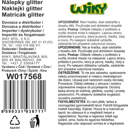 Nálepky 32x11 cm číslice s glitrem. 6 různých barev.
