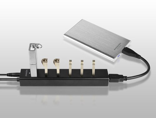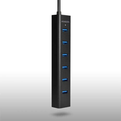 Rozbočovač / hub Axagon HUE-SA7BP snadno a rychle připojí k počítači až 7 USB zařízení současně pomocí rozhraní USB 3.0. Nabíjecí hub má napevno uchycený USB kabel o délce 40 cm, který je určen zejména pro připojení k notebooku, takže rozbočovač skvěle poslouží jako jednoduchá alternativa USB dokovací stanice pro notebook. Po zapojení nevyžaduje instalaci díky Plug & Play designu, takže jej lze ihned začít používat. Další velkou výhodou je podpora Hot Plug (též Hot Swap), takže můžete libovolně připojovat nebo odpojovat rozličná zařízení i za pochodu.