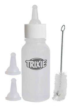 sada obsahuje lahev, kartáček na čištění láhve a 3 silikonové dudlíky