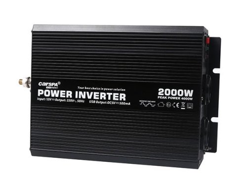 Napěťový měnič Carspa CAR2KU-24 o napětí 24V / 230V nabízí vynikající kvalitu a skutečný sinusový výstup pro provoz vašeho oblíbeného elektrického nářadí a jiných citlivých zatížení.