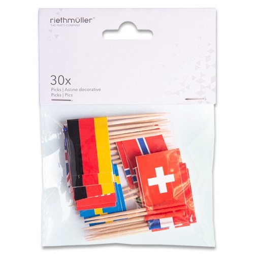Napichovátka s dekorativními vlaječkami 10 států v náhodném mixu. Délka 6,5 cm. Obrázek je pouze ilustrační, zobrazené vlaječky států nemusí odpovídat vlaječkám v zakoupeném balení.