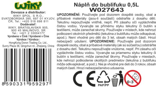 Náplň do bublifuku. Objem 0,5 L. Velikost 18 cm. 2 varianty - modrá, růžová.