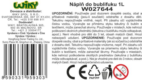 Náplň do bublifuku. Objem 1 L. Velikost 21,5 cm. 2 varianty - modrá, růžová.