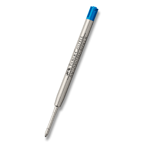 • modrá barva, * šíře stopy B, * náplň s ocelovou špičkou vhodná k propisování, * neblednoucí a barevně stálá, Náplň je vhodná do všech kuličkových per Faber-Castell