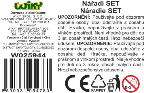 Nářadí set. Velikost kombinaček 16 cm. 2 varianty - červená, modrá.