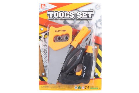 Sada nářadí obsahuje pilu, vrtačku, 2x kleště, klíč, šrouby a další doplňky. Rozměr balení cca 31 x 22 x 3,5 cm. Věk 3+