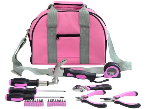 Brašnu je možné přenášet v ruce nebo pohodlně přes rameno. Ramenní popruh je vybaven výztuhou pro rovnoměrné rozložení váhy břemene a aby se popruh nezařezával do ramene. Sada nářadí v růžovém provedení, ideální pro ženy, která najde uplatnění v domácnosti, garáži nebo na chatě.