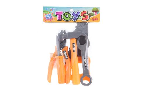 Plastové nářadí v sáčku. Balení obsahuje kladivo, klíč, šroubovák, kleště a pilku. Rozměry balení cca 16 x 22 x 4 cm. Věk 3+