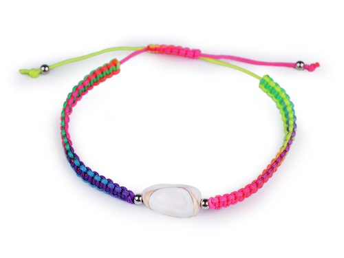 Shamballa náramky s mušlí jsou úžasným doplňkem letního outfitu. Hodí se jak k šatům, tak k halenkám, tričkům i plavkám. Prodávají se jako [sada mixu 12 ks] na papírové kartě k zavěšení, [mixy mohou mít různé barvy.] Na macramé šňůrky je doprostřed připevněná mušle a stříbrné plastové korálky. Zapínání je posuvné, oba konce náramku procházejí středovým uzlem, který umožňuje utažení šňůrek. Náramek má univerzální velikost.