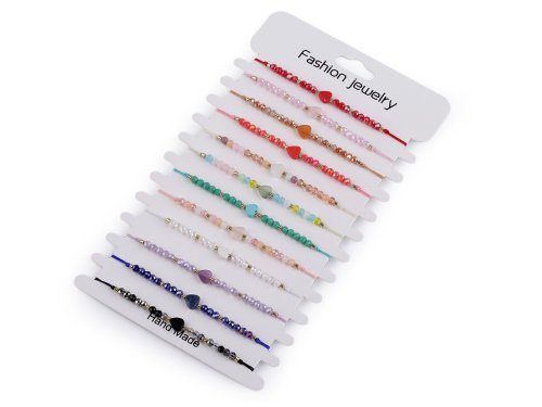 Shamballa náramky se srdíčkem a broušenými korálky s AB efektem jsou úžasným doplňkem letního outfitu. Oslní svým třpytem, hodí se jak k šatům, tak k halenkám, tričkům i plavkám. Jsou ideální pro každodenní nošení, ať už jdete do práce, na schůzku nebo do města. Mohou také sloužit jako dárek pro vaše blízké, jelikož se hodí ke všem příležitostem a stylům. Zapínání mají posuvné, oba konce náramku procházejí středovým uzlem, který umožňuje utažení šňůrek. Náramky mají univerzální velikost. Můžete je nosit samostatně pro decentní vzhled, nebo je kombinovat s dalšími náramky pro výraznější efekt. Náramky v mixu se prodávají jako sada 12 ks na papírové kartě k zavěšení.