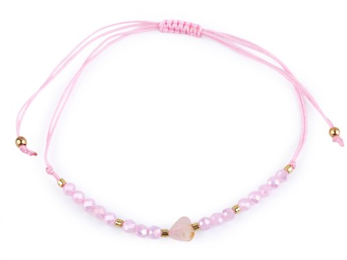 Náramek shamballa srdce a broušené korálky s AB efektem - růžová sv.