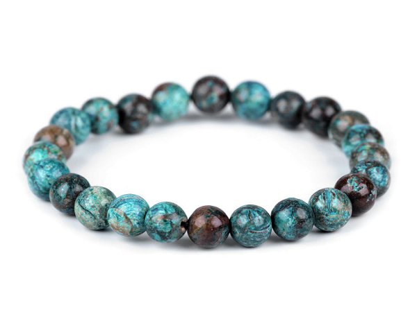 Náramek z korálků chryzokolu je jedinečným doplňkem pro dosažení klidu a harmonie. Hodí se na každodenní nošení. Díky pružence má univerzální velikost, snadno se natáhne na ruku. Náramky jsou z uměle vytvořeného minerálu, přesto mají pozitivní vliv na tělo i mysl. Jsou elegantní, posílí vaši vnitřní sílu. Korálky jsou uměle dobarvené.