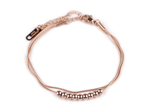 Dvouřadý hadí náramek je vyrobený z kvalitní nerezové oceli. Je ozdobený malými kulatými korálky s vysokým zrcadlovým leskem. Detailní zpracování a jednoduchý design z něj činí dokonalý módní doplněk pro jakoukoliv příležitost. Zapíná se na karabinku a prodlužovací řetízek.