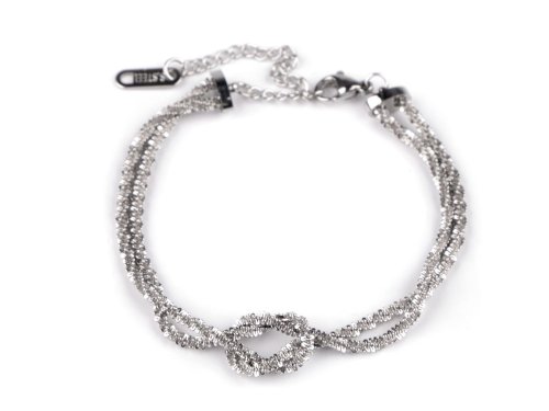 Dvouřadý náramek s uzlem je vyrobený z kvalitní nerezové oceli. Je mimořádně zajímavý svou kroucenou strukturou, díky své odolnosti a přitažlivému designu je tento náramek skvělou investicí do vaší každodenní elegance. Detailní zpracování a jednoduchý design z něj činí dokonalý módní doplněk pro jakoukoliv příležitost. Zapíná se na karabinku a prodlužovací řetízek.