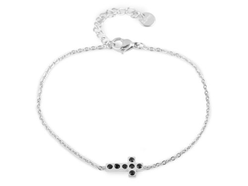 Náramek z nerezové oceli má poutavý detail v podobě křížku s broušenými kamínky. Jednoduchý a elegantní design z něj činí dokonalý módní doplněk pro každodenní nošení. Díky zapínání na karabinku a adjustačnímu řetízku je náramek snadno nastavitelný a dokonale se přizpůsobí vašemu zápěstí. Rozměry křížku jsou 8 x 13 mm.