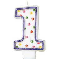 Narozeninová svíčka číslo 1 s tečkami. Výška 7,6 cm.