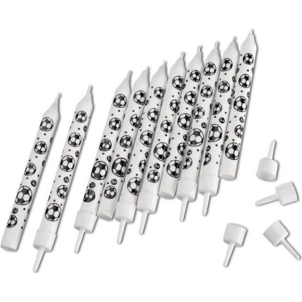 Narozeninové svíčky se zápichem, motiv fotbal.V balení 10 ks, výška 10 cm.