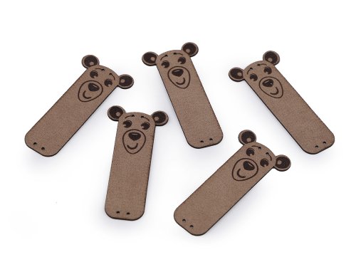 Nášivka / štítek z eko kůže medvídek - béžová tm. (5 ks)