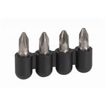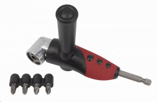 Úhlový držák bitů KRT063700 je dodáván se dvěma bity PH2 a dvěma bity PZ2 z CRV oceli a adaptérem 1". Součástí balení je i přídavné držadlo pro snadnější práci.
