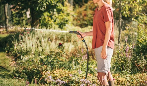 Plynule nastavitelný typ zavlažování. Otočením výměnné hlavy trysky s povrchem SoftGrip lze nastavit typy: tryska až oplach. Rukojeť má pohodlné ovládání průtoku palcem. Odolává poškození způsobenému mrazem a v nízkých teplotách je při držení teplejší, než je u držení kovových trysek. Univerzální připojení je kompatibilní s ostatními značkami. Výška: 18,5 cm, délka: 19 cm, šířka: 3,5 cm. Hmotnost: 0,14 kg.