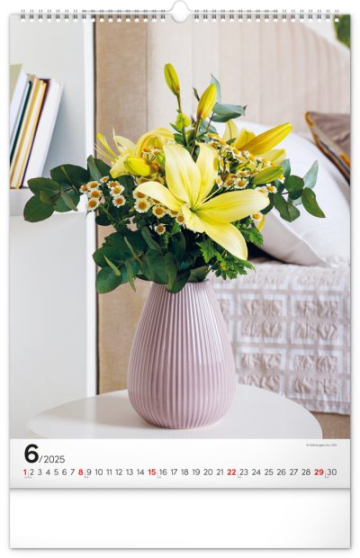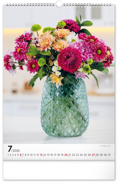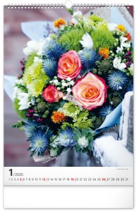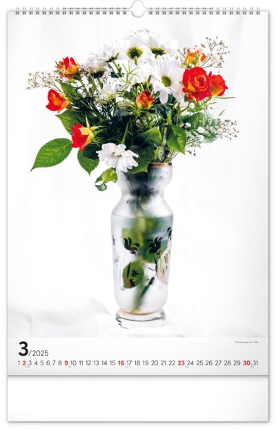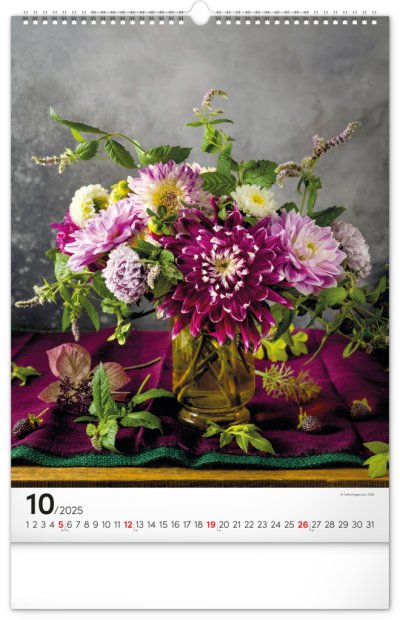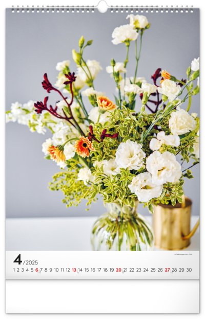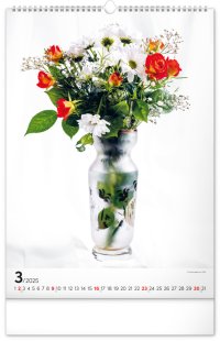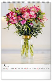 Originálně naaranžované kytice z čerstvých živých květů v nástěnném kalendáři s univerzálním kalendáriem. Potěšte se pohledem na fotografie pestrých a nikdy nevadnoucích květů bez ohledu na roční dobu.