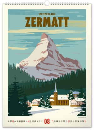 Velkoformátový kalendář s pečlivě vybranými klasickými plakáty horských středisek. Propracované detaily a živé barvy lze obdivovat na velkém formátu kalendáře s vysokou gramáží papíru.