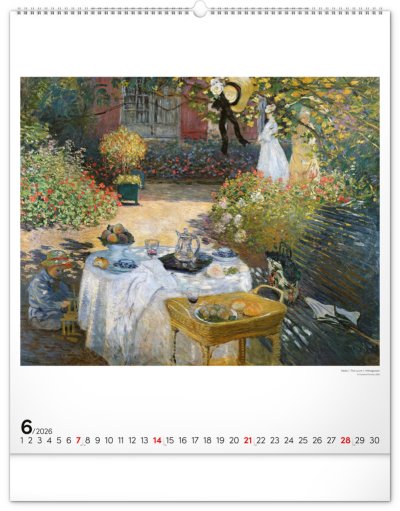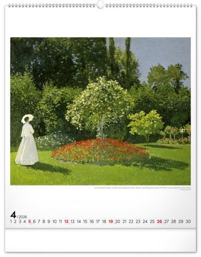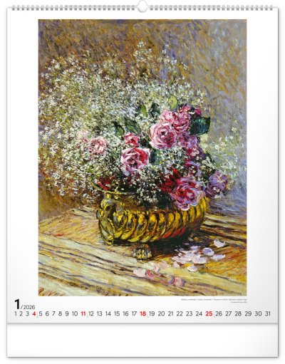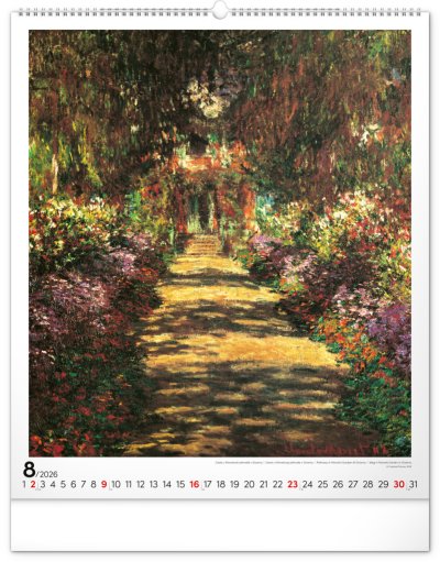 Seznamte se s dílem předního představitele impresionismu Clauda Moneta. Obrazy pestrých krajin a postav ožívají na velkém formátu kalendáře s vysokou gramáží papíru.