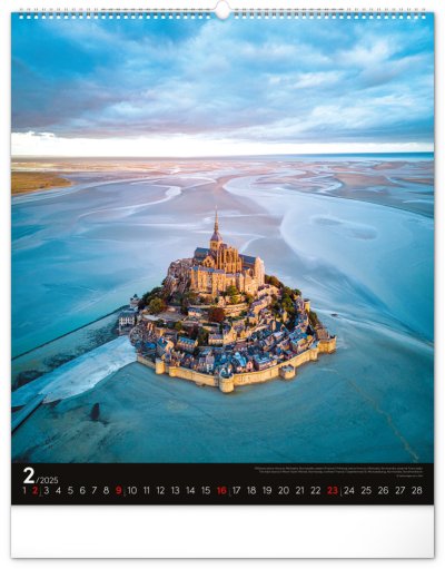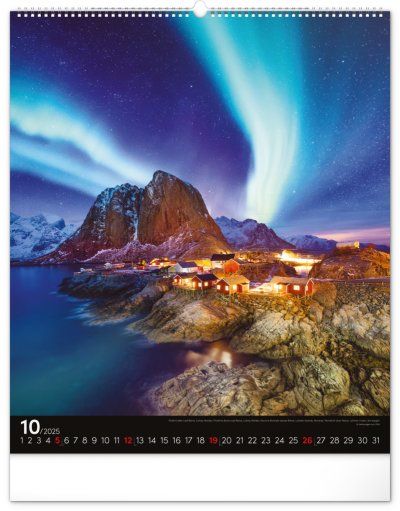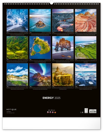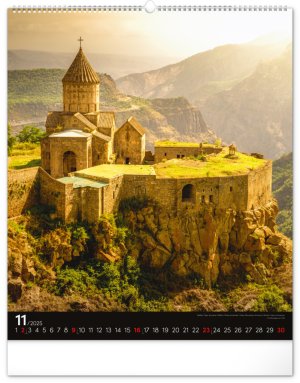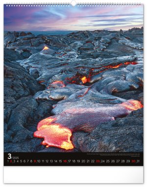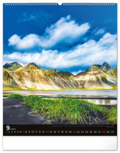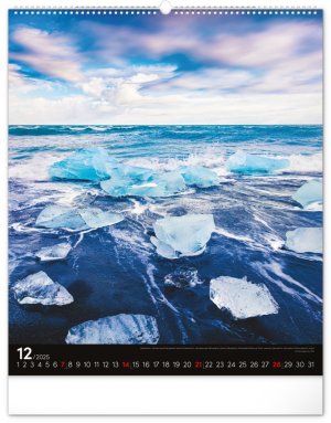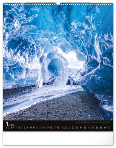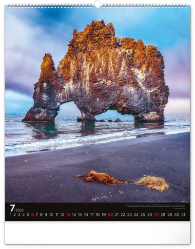 Kalendář z kolekce Platinum Collection obsahuje velkoformátové fotografie přírodních scenérií z exotických zemí. Pověste si na zeď okno do světa! Fotografie islandské přírody nebo arménského kláštera doplňuje univerzální kalendárium na černém pozadí.