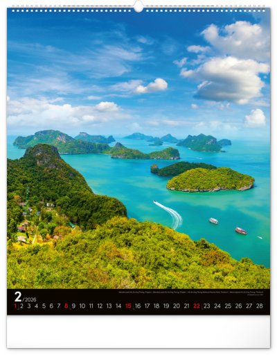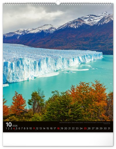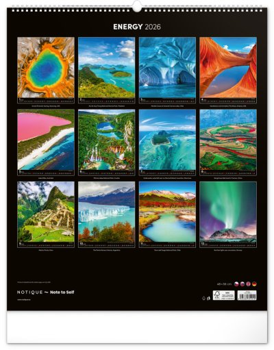 Kalendář z kolekce Platinum Collection obsahuje velkoformátové fotografie přírodních scenérií z exotických zemí. Pověste si na zeď okno do světa! Fotografie islandské přírody nebo arménského kláštera doplňuje univerzální kalendárium na černém pozadí.