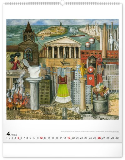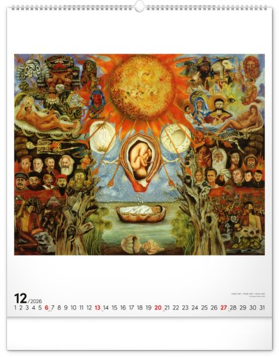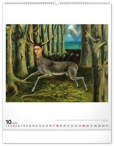 Velkoformátový kalendář s dvanácti obrazy mexické malířky, jejíž život i tvorba se staly symbolem odvahy a osobitého umění. Dílo Fridy Kahlo doplňuje jednoduché univerzální kalendárium na bílém pozadí.