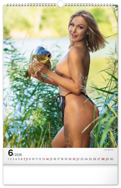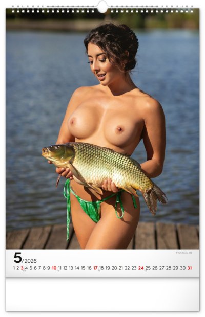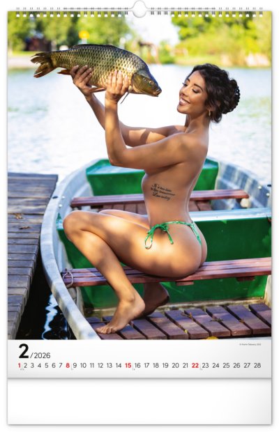 Nečekané spojení trofejních ryb a ženské krásy na stránkách nástěnného kalendáře s univerzálním kalendáriem pro všechny skutečně vášnivé rybáře.