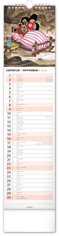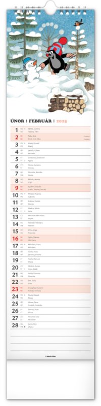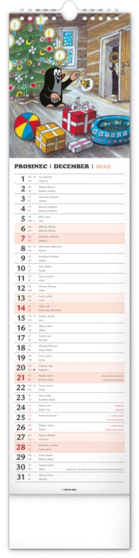 Praktický kravatový formát kalendáře s ilustracemi Zdeňka Milera.