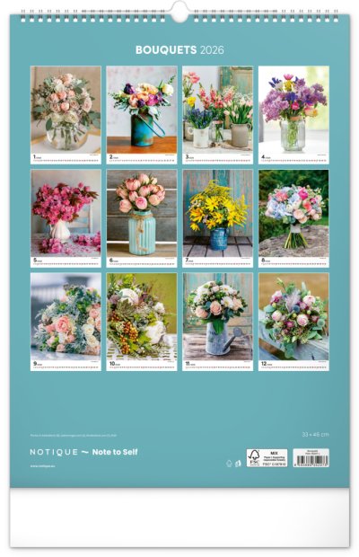 Originálně naaranžované kytice z čerstvých živých květů v nástěnném kalendáři s univerzálním kalendáriem. Potěšte se pohledem na fotografie pestrých a nikdy nevadnoucích květů bez ohledu na roční dobu.