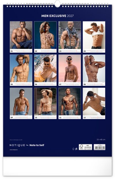 Kalendář přináší dvanáct fotografií pohledných mužů, kteří zaujmou nejen svým vzhledem, ale i charismatem. Elegantní provedení doplňuje jednoduché kalendárium se zvýrazněnými nedělemi.