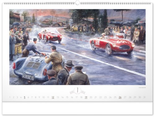 Krása starých sportovních automobilů a neopakovatelné závodní atmosféry od české ilustrátorské legendy Václava Zapadlíka. Nástěnný kalendář v šířkovém formátu je doplněn univerzálním kalendáriem se zvýrazněnými nedělemi.