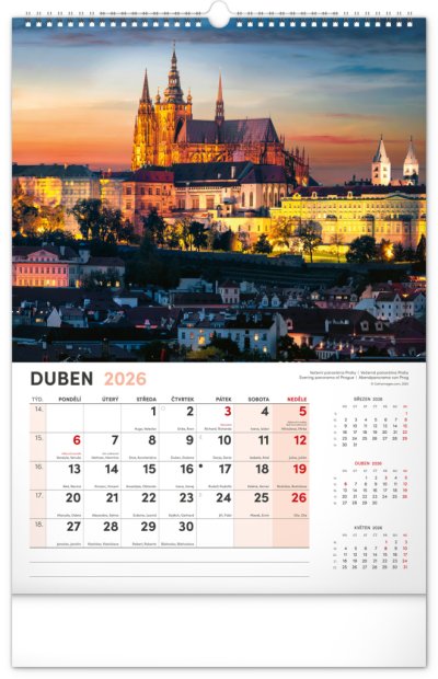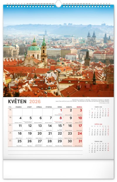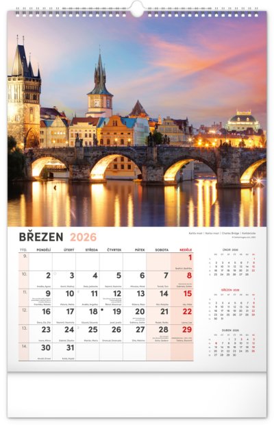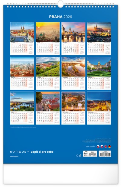 Kalendář, který vás provede věhlasnými památkami české metropole, která se právem řadí mezi nejkrásnější města Evropy. Prostřednictvím dvanácti fotografií ve výškovém formátu navštívíte jak známé památky, tak neobvyklá zákoutí. Záběry na Karlův most, Pražský hrad nebo Václavské náměstí doplňují popisky ve čtyřech jazycích a jednoduché bílé kalendárium. Kalendář potěší všechny milovníky historie a architektury.