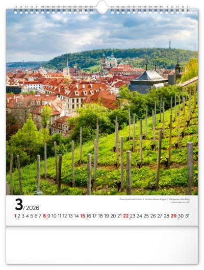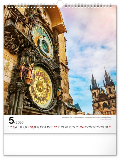 Kalendář ukazuje Prahu nejen jako hlavní město, ale také jako historické centrum evropského umění a kultury. Praha se pyšní svými krásami na dvanácti fotografiích, které doplňuje jednoduché kalendárium nerušící kompozici fotografie.