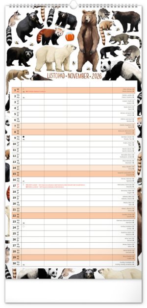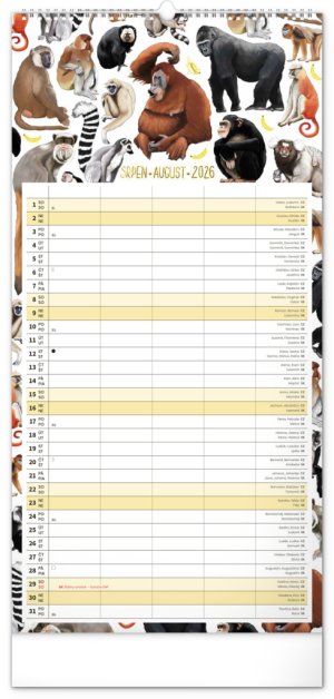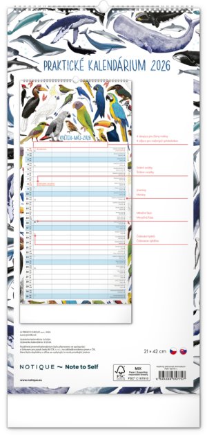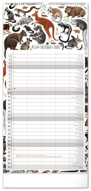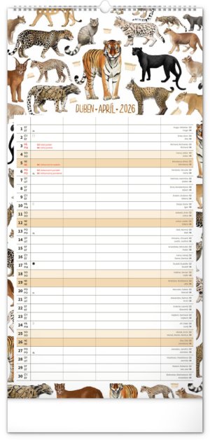 České a slovenské kalendárium a samostatný plánovač aktivit až pro čtyři členy domácnosti doplňují krásné ilustrace zvířat. Nechybí státní svátky ani měsíční fáze.