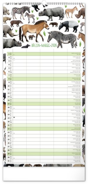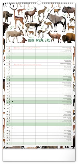 České a slovenské kalendárium a samostatný plánovač aktivit až pro čtyři členy domácnosti doplňují krásné ilustrace zvířat.