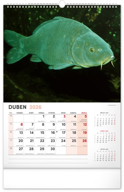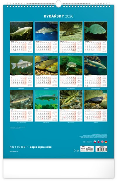 Dvanáct fotografií z vodního světa v tomto nástěnném kalendáři zachycují ty nejskvostnější úlovky. Rozšířené kalendárium obsahuje česká jména, svátky a památné dny, tříměsíční přehled na každé straně a prostor pro poznámky. Nadchne všechny vášnivé rybáře a milovníky vodních ploch.