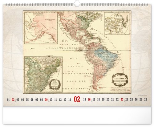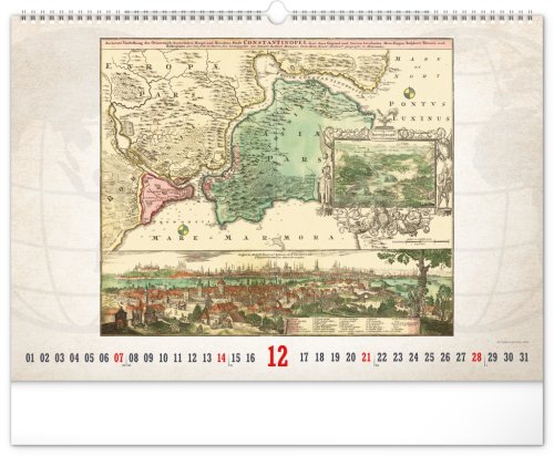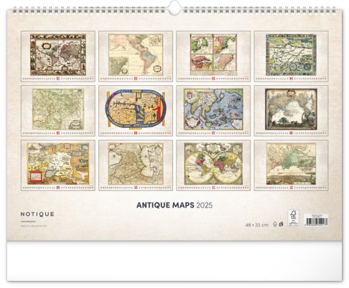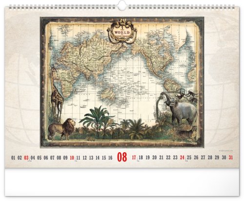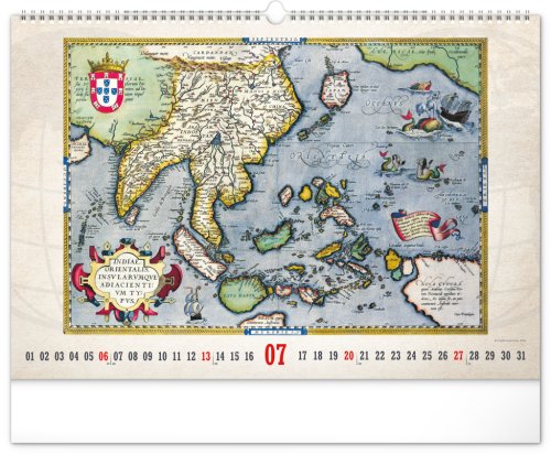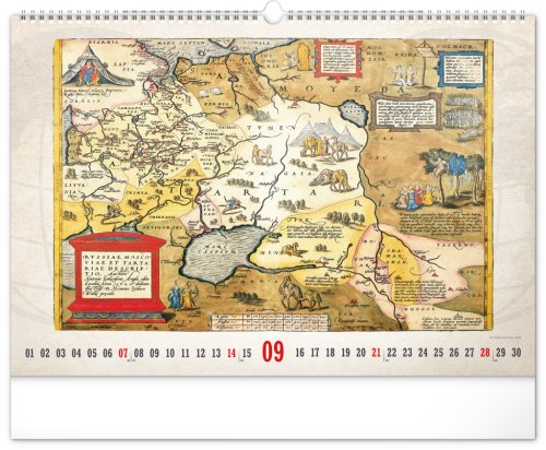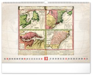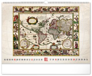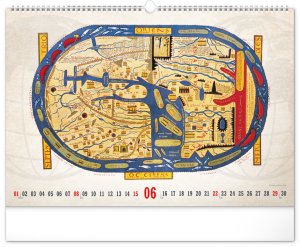 Kalendář pro všechny znalce ručně vytvořených map z dávných dob. Detailní kresby s estetickou hodnotou ale potěší i milovníky užitého umění. Jednoduché kalendárium na bílém pozadí.