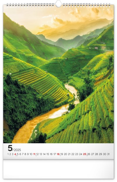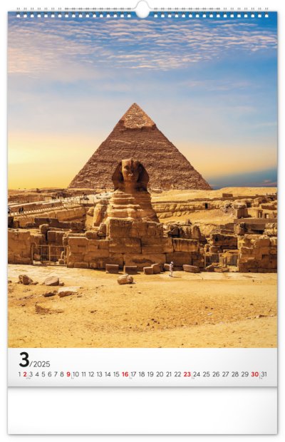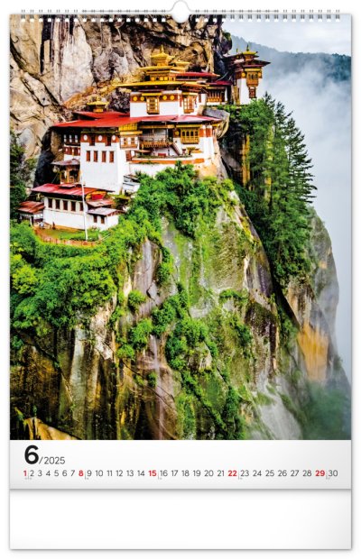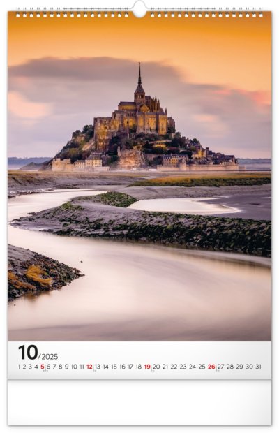 Procestujte prostřednictvím našeho kalendáře rozličné destinace, kde byly vytvořeny dechberoucí stavby. Sytě barevné výjevy hezky vyniknou na bílém pozadí s jednoduchým kalendáriem.