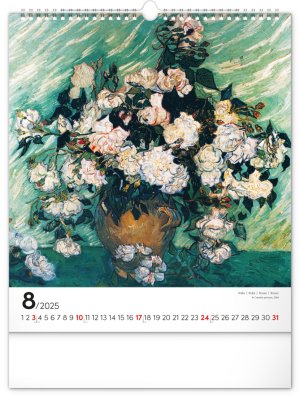 Na stranách kalendáře v obdélníkovém formátu naleznete nejznámější van Goghova díla vytištěná na kvalitním papíře s vysokou gramáží.