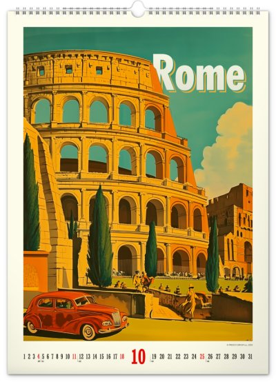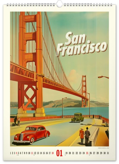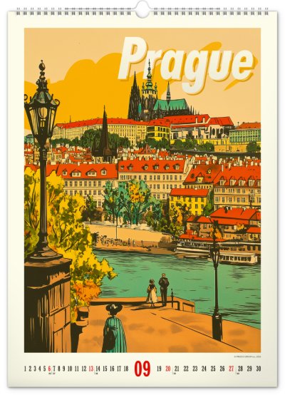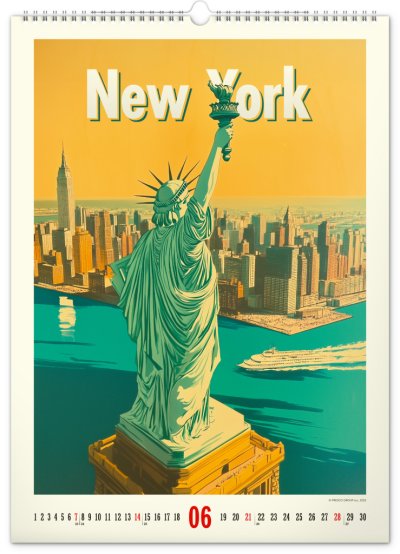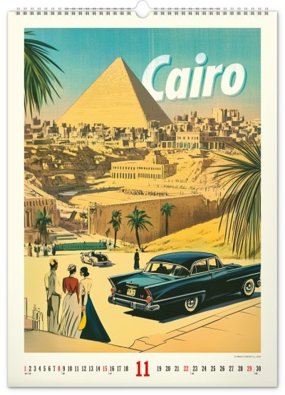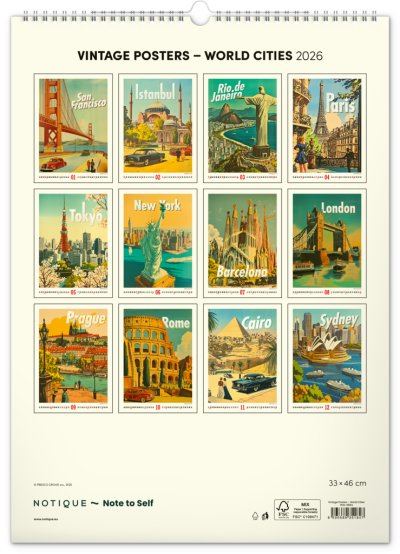 Nechte se unést atmosférou měst jako ze starých dobrých časů. Nástěnný kalendář doplňuje jednoduché kalendárium na bílém pozadí.