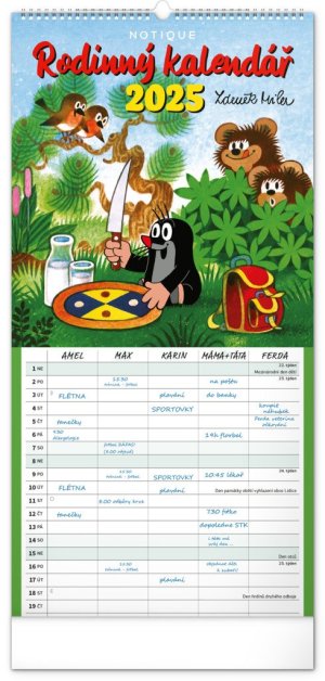 Je pro vás rodina na prvním místě? Zorganizujte všechny rodinné aktivity v praktickém plánovacím kalendáři s klasickými ilustracemi Krtečka od Zdeňka Milera. Kalendář obsahuje české kalendárium a samostatný plánovač aktivit pro až pět členů domácnosti.