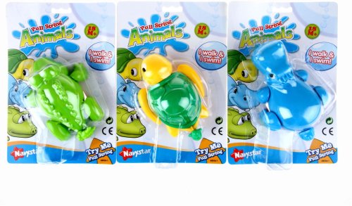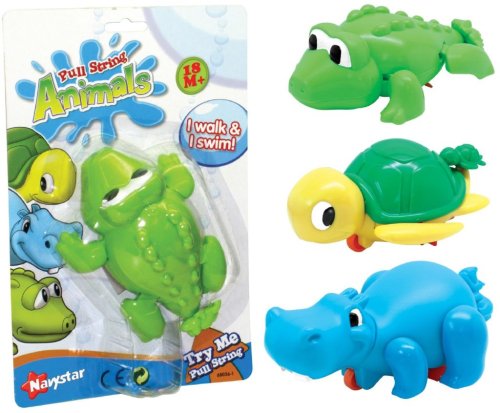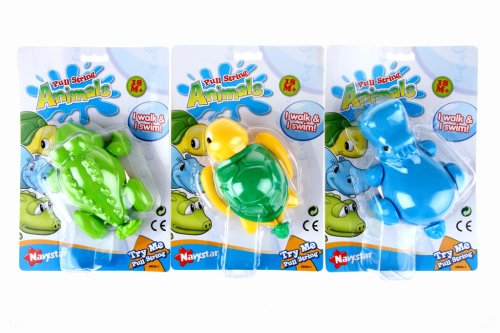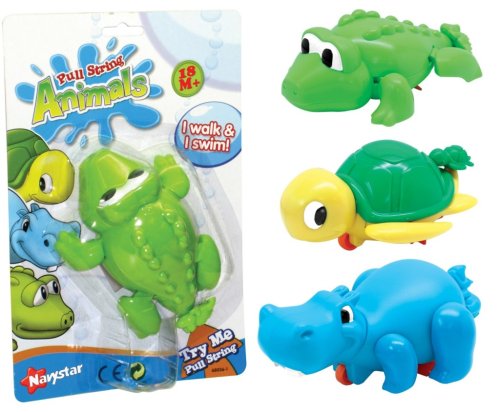 Hračka je vyrobena z kvalitního plastu. Má zářivé barvy a dětem se bude líbit. Po natažení jede zvířátko vpřed nebo plave. V nabídce je želva, hroch, krokodýl. S natahovací hračkou do vody nebylo koupání nikdy tak zábavné. Po natažení provázku se hračka legračně pohybuje po hladině. Zvířátka se nikdy neunaví – můžete je natahovat stále a stále dokola.