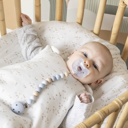Klip na dudlík je stylovým doplňkem a zároveň zajistí aby byl dudlík vždy čistý a na dosah.