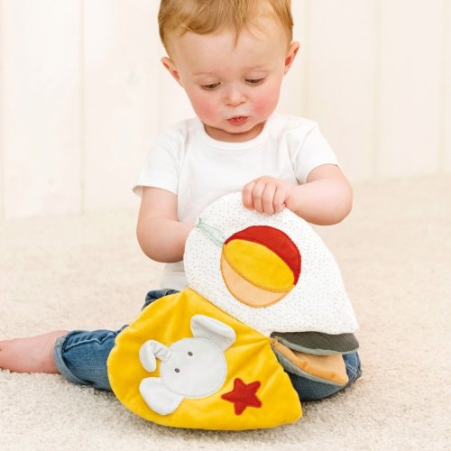 Měkká plyšová knížka s barevnými motivy a zábavnými aktivitami je dokonalým společníkem vašeho miminka. Knížka nabízí spoustu detailů a možností pro uchopení a dotek a má dokonalý tvar i pro ty nejmenší ručičky. Díky různým materiálům a tvarům pomáhá rozvíjet hmat a motoriku. Při jejím listování objevíte integrované bezpečné zrcátko, veselá zvířátka a stužky, které nabídnou plné stránky zábavy